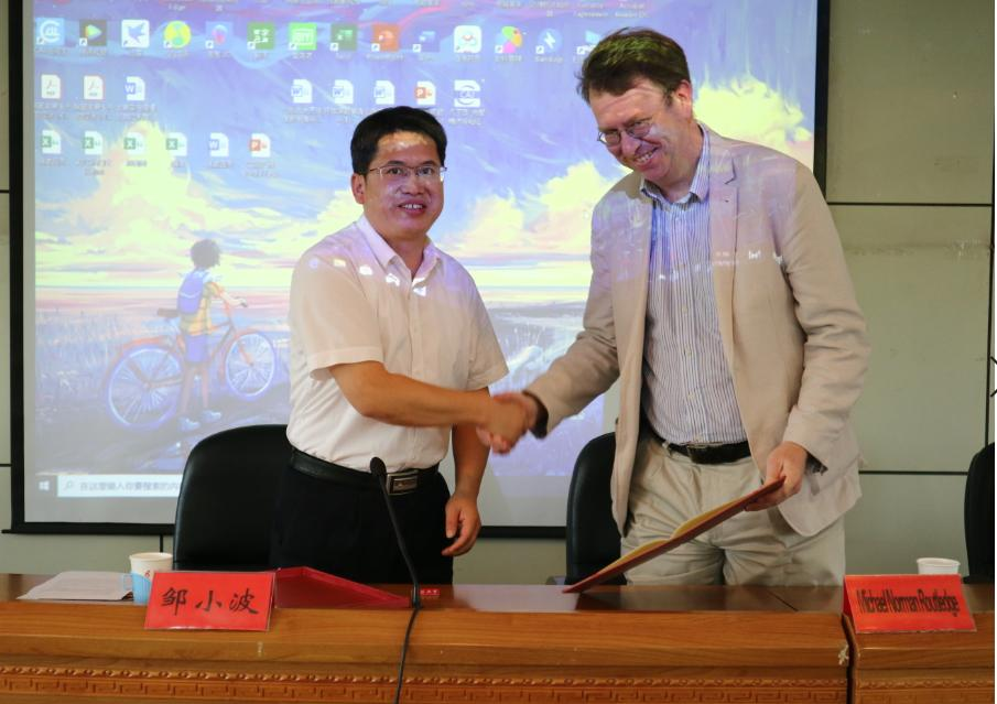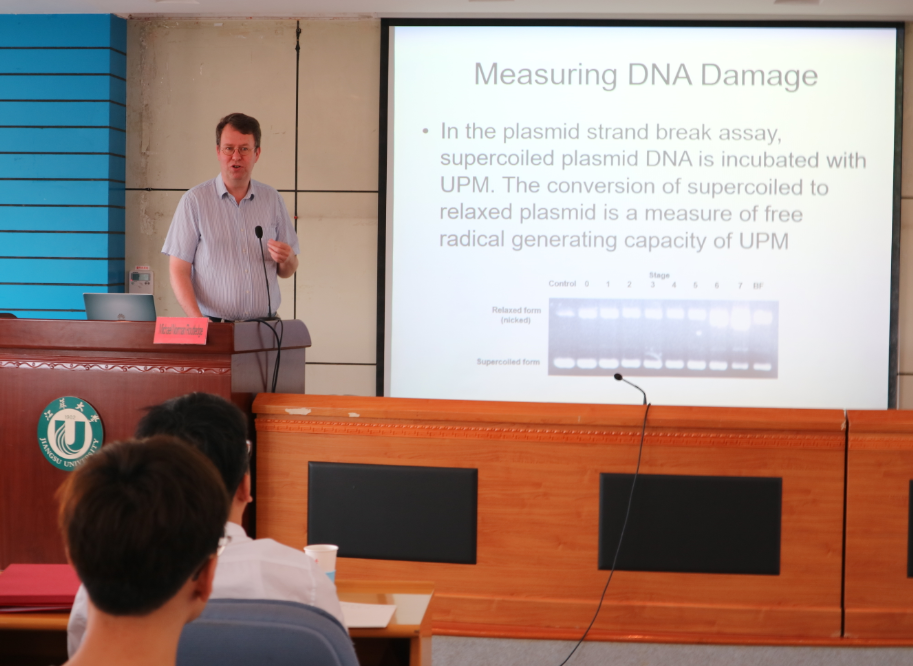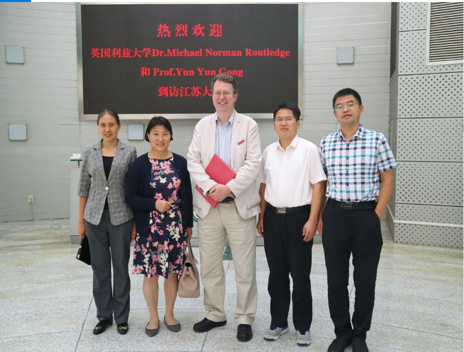 On Sep. 19, Dr. Michael Norman Routledge from University of Leeds, was appointed part-time professor of Jiangsu University. At the ceremony, Zou Xiaob, Dean of School of Food and Biological Engineering, granted Dr. Michael Norman Routledge a letter of appointment, pinned a Jiangsu University emblem for him. Dean Zou Xiaobo made a brief introduction of Dr. Routledge Curriculum Vitae and major academic achievements. More than 100 Sino-foreign faculty members and students of the school attended the ceremony. After the ceremony, Prof. Michael Norman Routledge made lectures entitled Cellular toxicity of nanoparticles and Measurement of mycotoxin exposure in human populations using biomarkers of exposure