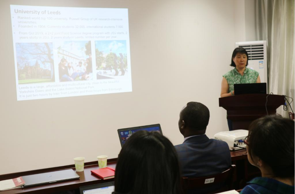 On May 30th 2019, Prof. Yunyun Gong from the School of Food Science and Nutrition, University of Leeds, Leeds, UK, visited Jiangsu University. She (Dr. Yunyun Gong) delivered an academic lecture entitled “Impact of individual and mixtures of mycotoxins and persistent organochloride pesticides on reproduction - in vitro investigations.” Prof. Huang Xingyi, Vice-dean of the School of Food and Biological Engineering (SFBE), Jiangsu University, hosted the lecture and performed the introduction of Dr. Yunyun Gong and her associate, Dr. Martin E. Kimanya from Tanzania. Some faculty members and Foreign –Sino students of the school (SFBE) attended the lecture. After the lecture, Prof. Gong and Dr. Martin visited our laboratory accompanied by Prof. Ma Haile.