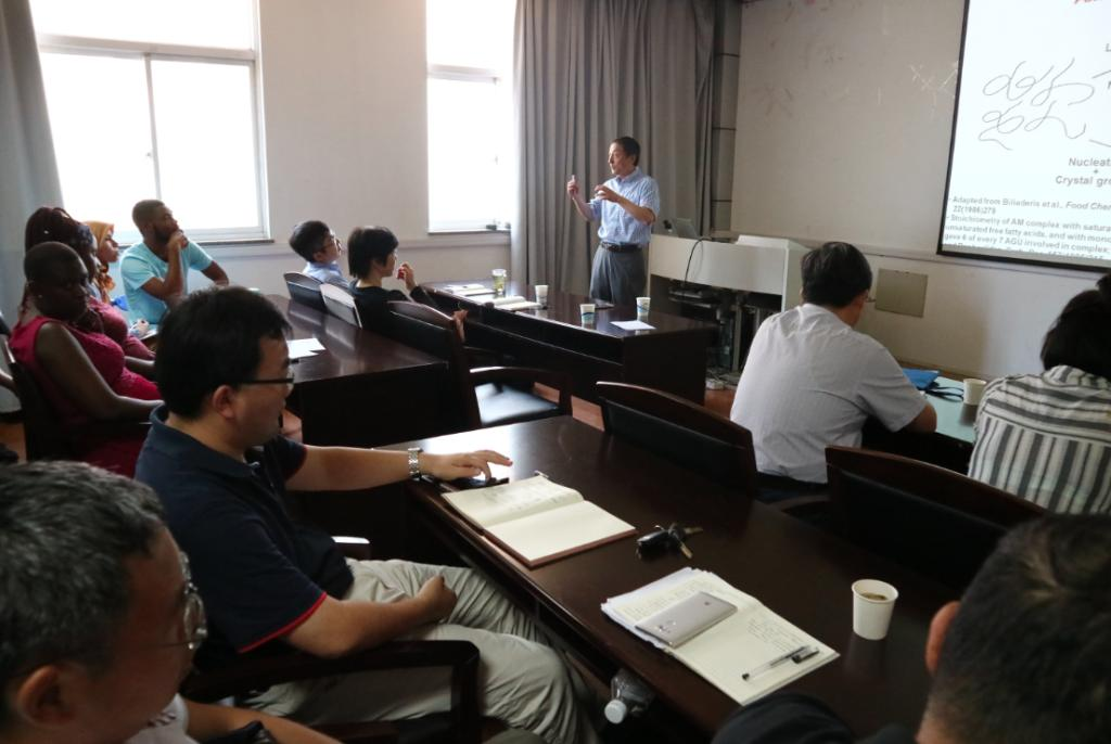 Prof. Dr. Yong-Cheng Shi from Department of Grain Science and Industry, Kansas State University, visited Jiangsu University on Jun., 11. Zou Xiaobo, the dean of School of Food and Biological Engineering, introduced Dr. Shi. Prof. Yong-Cheng Shi delivered an academic lecture named Structure and Function of Starch. More than 60 Sino-foreign faculty members and students attended the lecture.