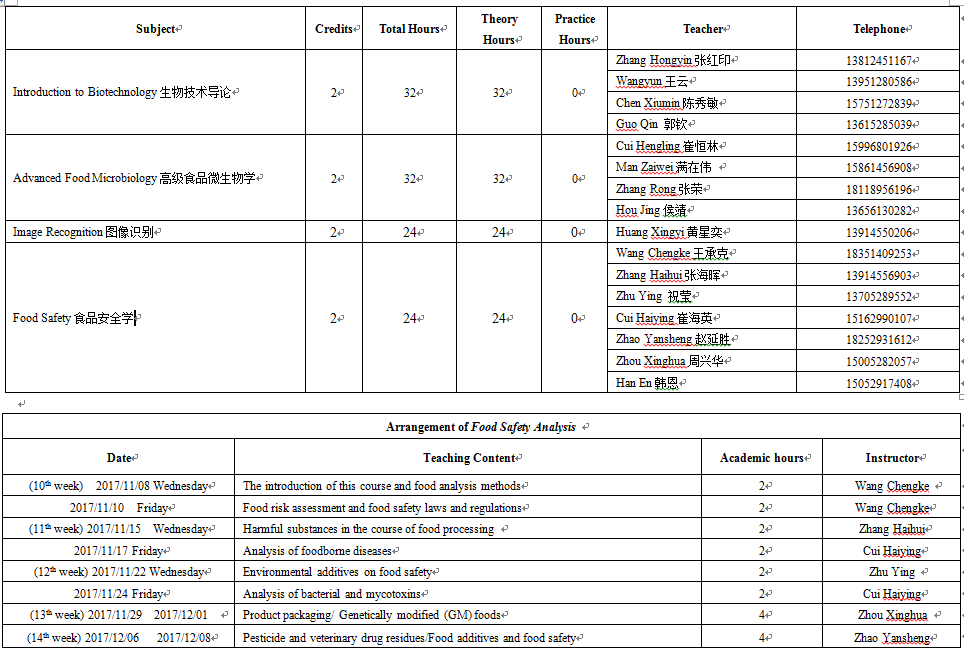 Time Table of Specialized Subjects for FBE PhD. candidates in Academic Year 2017-2018(1)