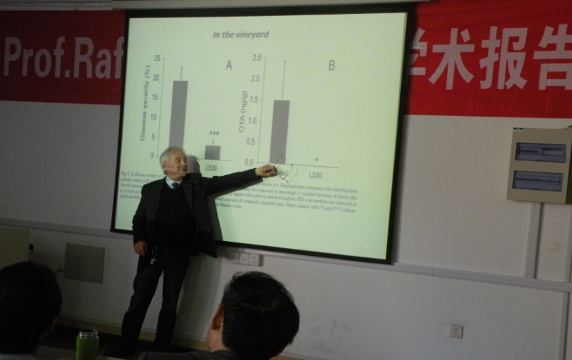 On Apr. 23, Prof. Raffaello Castoria from University of Molise visited Jiangsu University. At the ceremony, Zhou Jun, the Party Secretary of School of Food and Biological Engineering, introduced Prof. Castoria. After that, Prof. Castoria delivered an academic lecture named Biodegradation of mycotoxins - microbes in the service of man and animals. The lecture briefly introduced the issue of mycotoxin contamination, the physical and chemical methods for their detoxification/decontamination and the limits of these methods. Then it focused on the biodegradation of mycotoxins by microbial agents and their enzymes as a new promising approach, with particular emphasis on the possible exploitation of yeasts that are used as biocontrol agents against mycotoxin-producing fungi.
