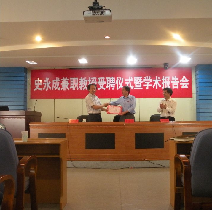 On Jun 5, professor Yong-Cheng Shi,Department of Grain Science and Industry, Kansas State University, was appointed part-time professor of Jiangsu University. Ma Haile, Dean of School of Food and Biological Engineering, and some faculty members and students of the school attended the ceremony. At the ceremony, Chen Long, the vice President, granted prof. Yong-Cheng Shi a letter of appointment, pinned a Jiangsu University emblem for him. Dean Ma Haile made a brief introduction of prof. Shi’s Curriculum Vitae and major academic achievements. After the ceremony, prof. Yong-Cheng Shi made a lecture entitled Recent Advances in Resistant Starch and Slowly Digestible Starch.