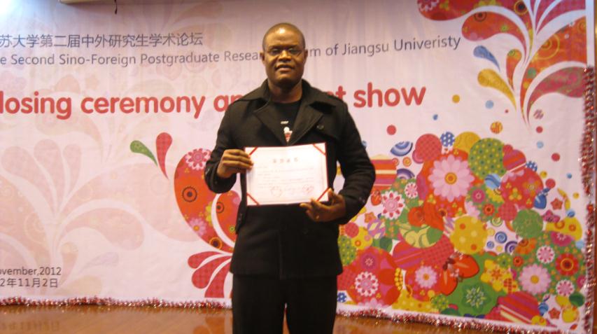 The Second Sino-foreign Postgraduate Forum of Jiangsu University was held from Oct 29thto Nov 1st, 2012. In an enthusiastic atmosphere, the Seven postgraduates took part in the Engineering Forum Ⅱand Vice professor Wang Zhen-Bin from the School of Food and Biological Engineering, presented an academic lecture on Ultrasound Application in Food Processing. Ernest Ekow Abano, postgraduate student of School of Food and Biological Engineering, gave an academic lecture on Optimization of Drying Conditions for Quality Dried Tomato Slices Using Response Surface Methodology. Ernest Ekow Abano won the third Place after the intense competition. Rosemond Godbless Dadzie won an excellent poster award on the topic Optimization of Process Conditions for Degree of Hydrolysis and ACE Inhibitory Activity for vital wheat gluten hydrolysates. Felix Narku Engmann also did a presentation on the topic Festivals in Ghana, a Tool for Social Cohesion and Community Development and won the second best position. TCHABO William also won an excellent presentation award in the cultural festival.