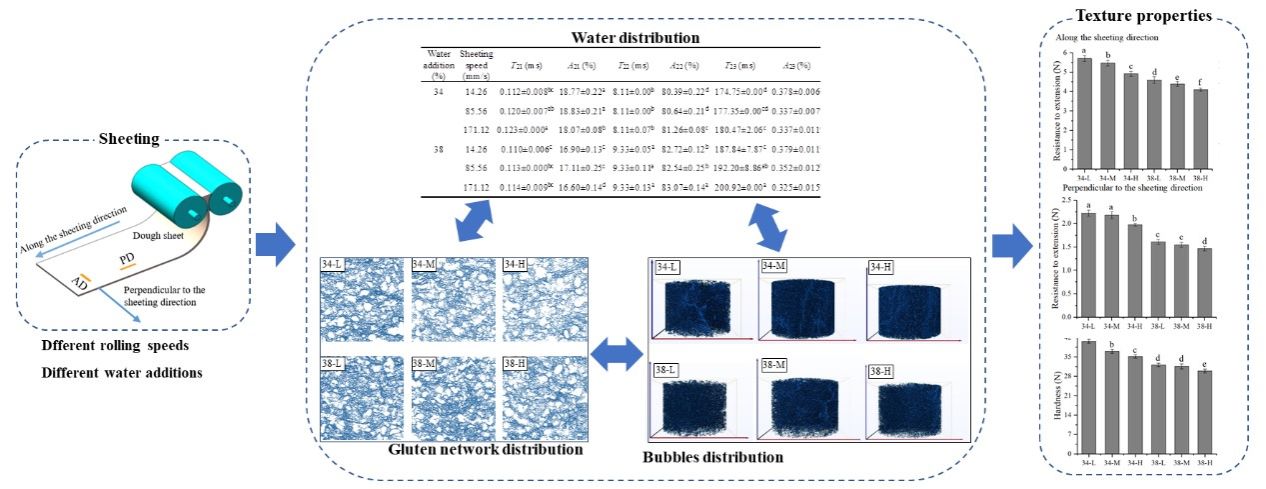 徐斌教授团队在国际Top期刊Food Chemistry上在线发表题为“Analysis of the effect of rolling speed on the texture properties of noodle dough from water-solid interaction, development of gluten network, and bubble distribution”的研究论文。海角网