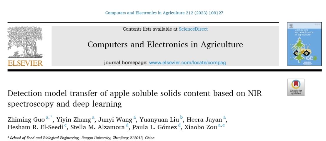 近日,郭志明教授课题组在农业科学领域Top期刊Computers and Electronics in Agriculture(Q1,园艺类第1)上发表了题为“Detection model transfer of apple soluble solids content based on NIR spectroscopy and deep learning”的研究论文。海角网