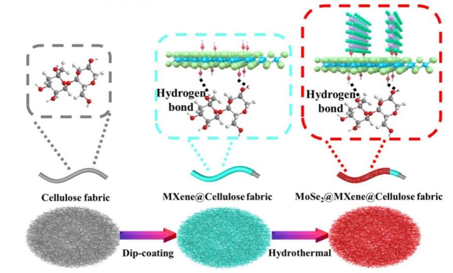 林琳教授课题组的研究成果“Multifunctional MoSe2@MXene Heterostructure-Decorated Cellulose Fabric for Wearable Thermal Therapy”,林琳教授为通讯作者。