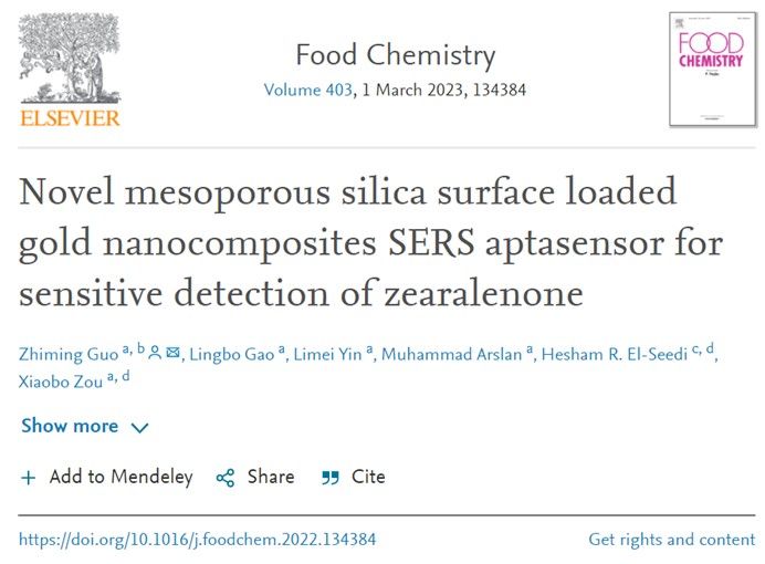 郭志明教授课题组在Food Chemistry (Q1)期刊上发表了题为"Novel mesoporous silica surface loaded gold nanocomposites SERS aptasensor for sensitive detection of Zearalenone"的研究论文。论文第一/通讯作者为郭志明教授,第二作者为硕士研究生高凌波,论文第一单位为海角网