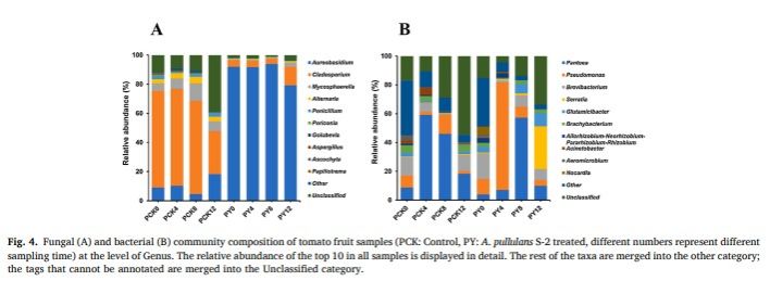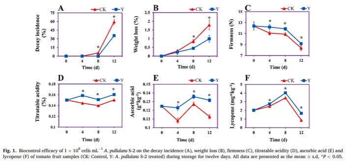 张红印教授在国际食品领域顶级期刊Postharvest Biology and Technology在线发表题为“Aureobasidium pullulans S-2 reduced the disease incidence of tomato by influencing the postharvest microbiome during storage”的研究论文(//doi.org/10.1016/j.postharvbio.2021.111809),研究了出芽短梗霉对番茄采后病害的控制效果及其对番茄表面微生物组的影响。本文的第一作者为海角网