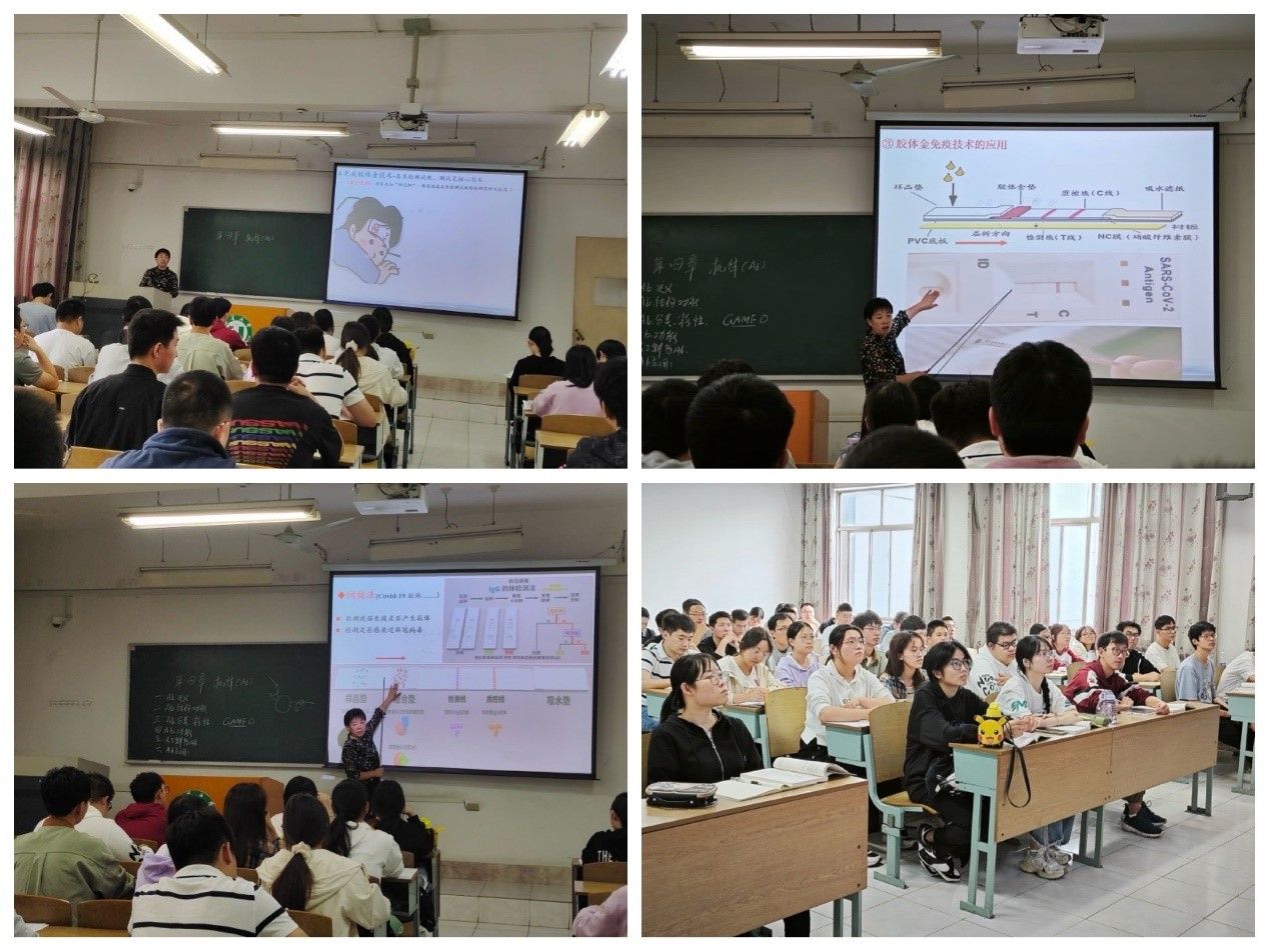 优秀教学案例《居家也知“阳没阳”新冠病毒抗原测试纸的原理及应用》,生动并深刻地讲解了胶体金的定义、免疫胶体金技术的应用特点及应用三部分内容。在深入浅出讲解专业知识的同时,生物技术专业广阔前景、勇于专业探索等思政内容设计方面也自然流畅,不刻板生硬,易于接受,在实现有效知识传授的同时,也促进了专业素养的培养。本次课堂设计、课堂互动、教学效果均得到了同学们和观摩教师的一致称赞。