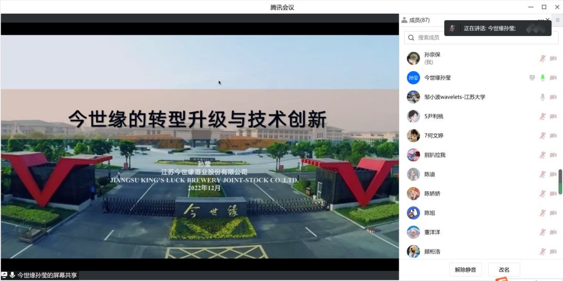 举办的“产业教授进校园活动”顺利举行,本次会议邀请了江苏省产业教授、江苏今世缘酒业股份有限公司勾储中心孙莹主任在线上为同学们做了“今世缘的转型升级与技术创新”的专题报告。海角网