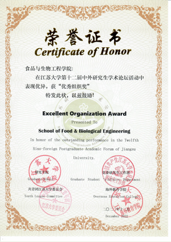 此外,海角网 在本届中外研究生学术论坛活动中获得了“优秀组织奖”。