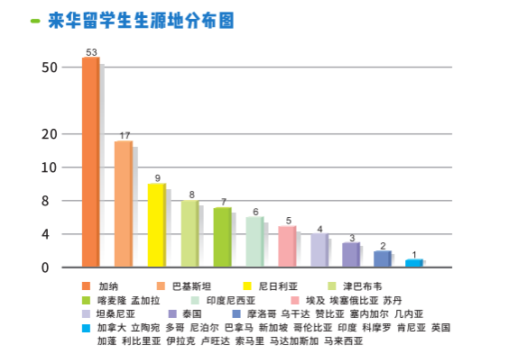来华留学教育初具规模,培养了来自35个国家和地区的157名留学生,98%以上是学历生。从学历生层次来看,以研究生为主:博士生82人,硕士生55人,本科生17人;从生源国来看,主要来源于加纳、巴基斯坦、尼日利亚、孟加拉等亚非国家。研究生培养方向遍布学院五大研究方向,培养依托项目包括国家重点研发计划项目、国家科技支撑计划项目、国家自然科学基金重点国际合作项目、国家自然科学基金项目等国家重大科技计划,年均科研经费约3000万元。51位教师任研究生导师,占专任教师比例36%,2021年留学研究生授课老师46人,占专任教师比例32%。本科生培养依托食品科学与工程本科专业(该专业两次通过国家工程教育认证评估,入选国家级首批一流本科专业建设点),采取大类培养模式,配置学业导师,实施线上线下混合教学方案和中外融合实习体系,实现培养全方位。2021年留学本科生授课老师55人,占专任教师比例39%。