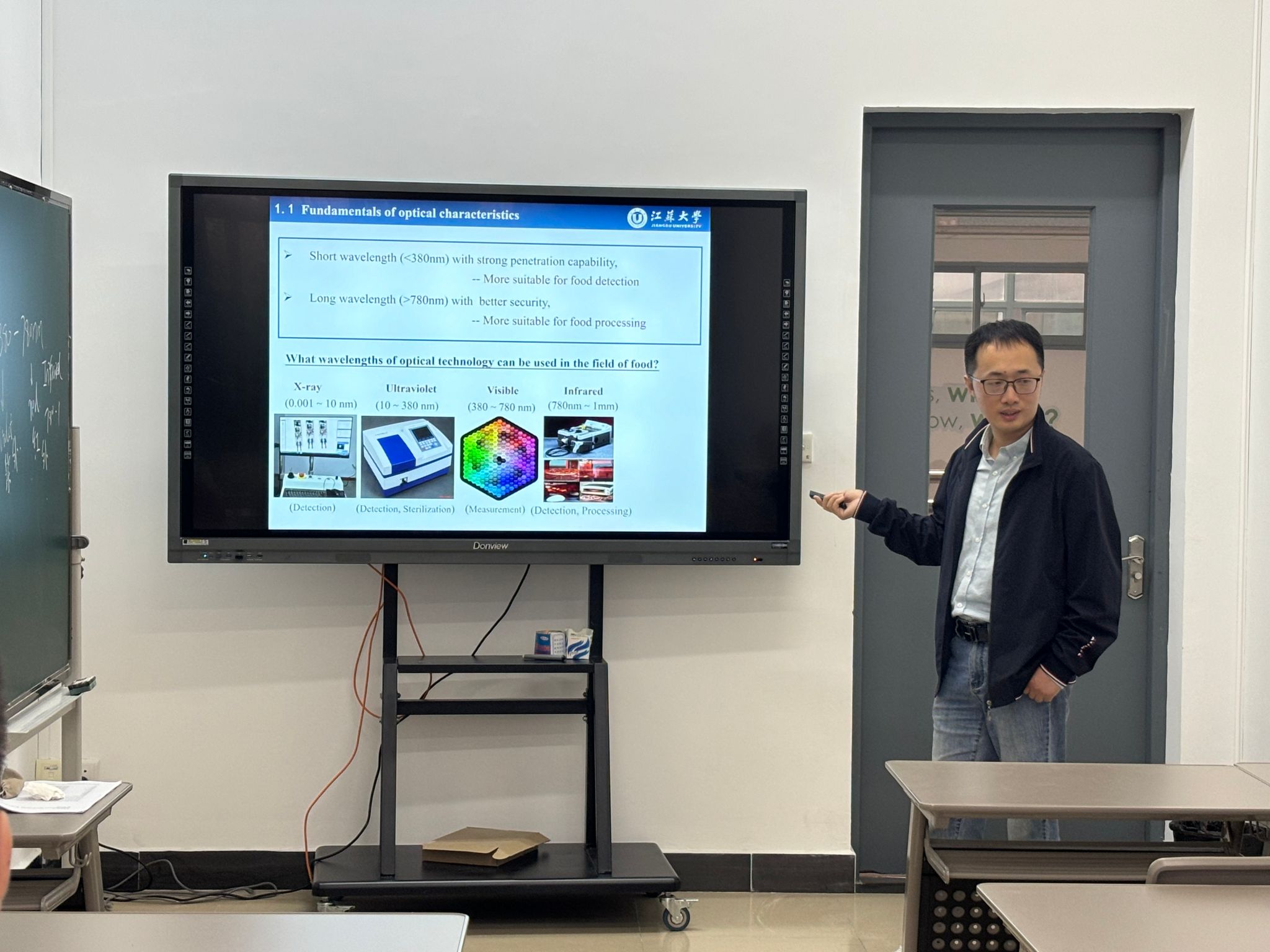 林颢老师在简单回顾上节课堂讲授内容基础上,引出本节公开课的新内容:optical characteristics in foods。林老师在深入浅出讲解专业知识的同时,结合食品类专业广阔前景、本学院教师在无损检测方面的优秀科研成果等思政元素,在实现有效知识传授的同时,也促进了专业素养的培养。观摩教师们认为此次公开课课堂气氛良好,课程结构紧密细致,课程内容重点突出,逻辑思路清晰,具有很好的示范作用。