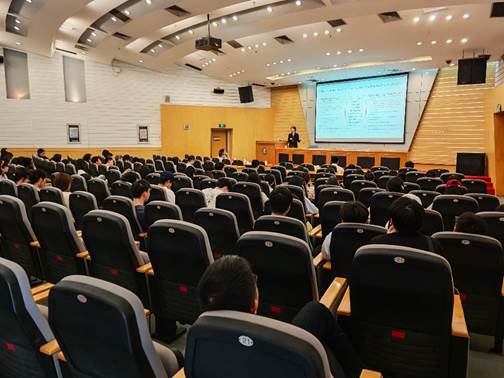俞良莉教授首先系统阐述了保健食品与功能食品的基本概念,并从人类健康需求和乡村振兴战略两个维度,深入分析了相关研究的现实意义。随后,她重点介绍了多学科交叉研究在构建可持续、安全健康的食品体系中的应用,分享了国际前沿的研究成果与实践案例。整场报告内容丰富、深入浅出,既有理论高度,又贴近实际应用,现场师生反响热烈。在互动环节,俞教授与参会师生围绕功能食品研发、食品安全、营养健康等话题展开深入交流,现场学术氛围浓厚。